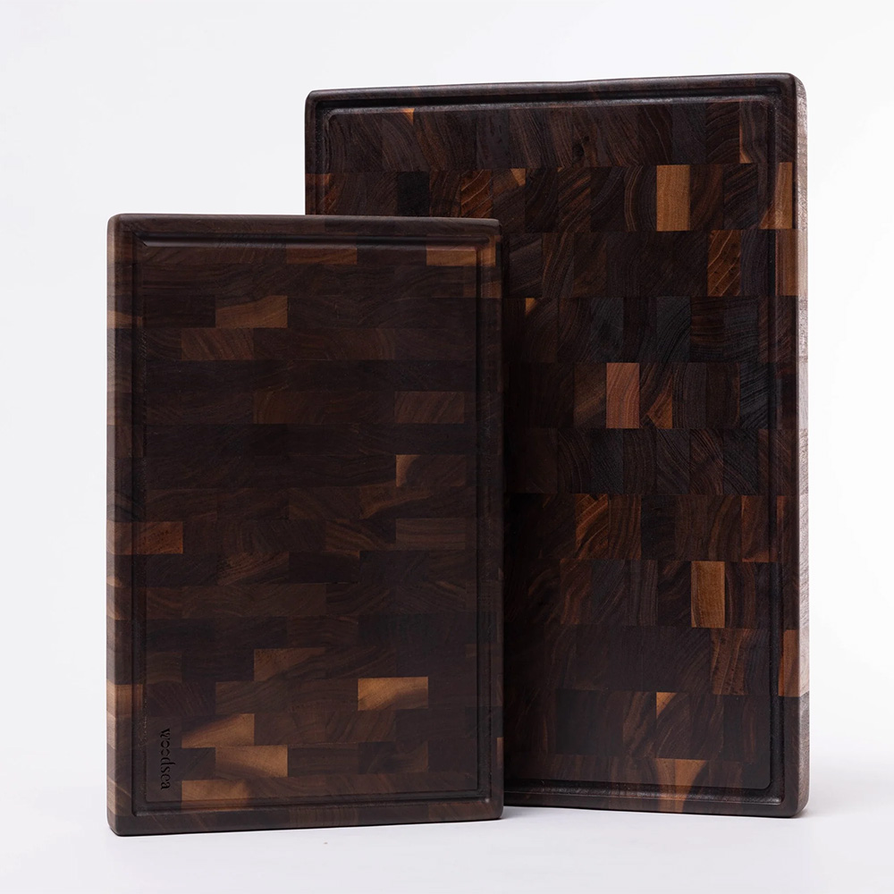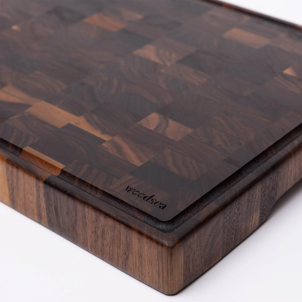 De Woodsea Woodstone walnoot snijplank combineert luxe vakmanschap met praktische functionaliteit. Gemaakt van massief walnoothout met end grain-constructie, beschermt deze plank je messen, biedt een duurzaam werkoppervlak en voegt een warme, natuurlijke uitstraling toe aan iedere keuken. Handgemaakt en met een uniek patroon voor elk exemplaar, is deze plank zowel een professioneel keukengereedschap als een stijlvolle serveerplank.