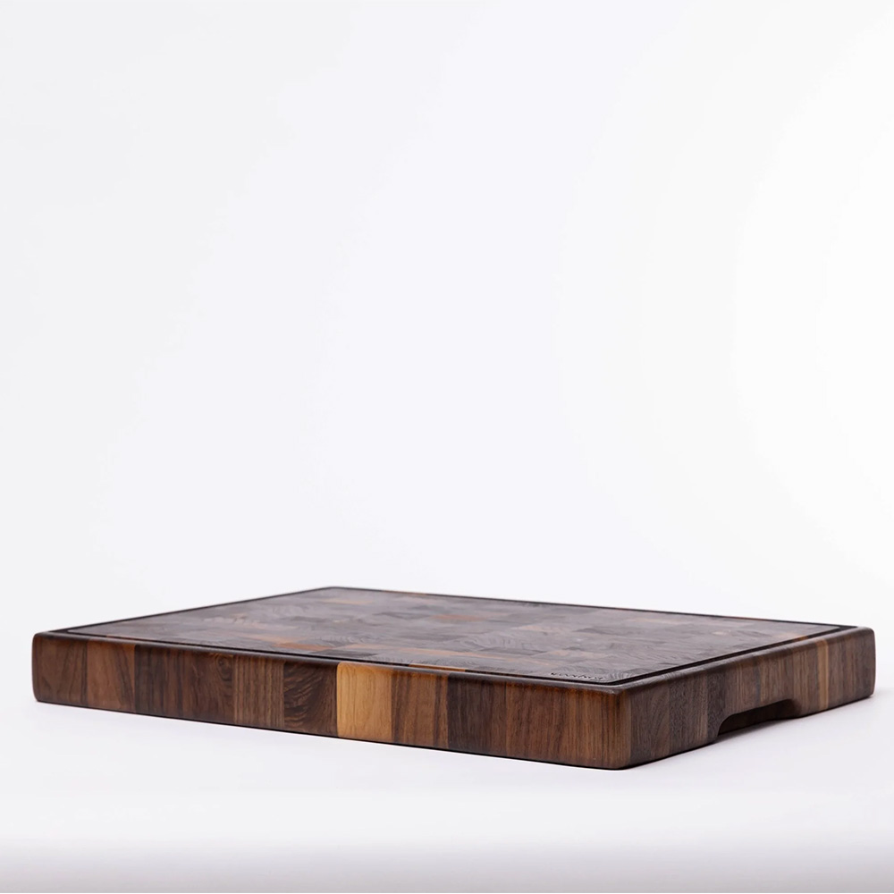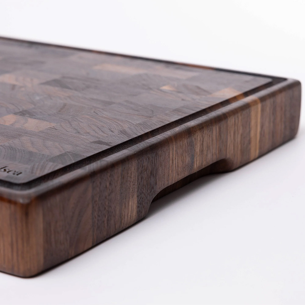 Met royale afmetingen biedt deze plank voldoende werkruimte voor het snijden van vlees, vis, groenten en brood. De natuurlijke walnoottinten maken de plank ook geschikt om te serveren tijdens diners of borrels. Het zorgvuldig gelamineerde blokpatroon zorgt voor stevigheid en karakteristieke uitstraling, waarbij de opvallende dikte van maarliefst 5 centimeter zorgt voor veel karakter.