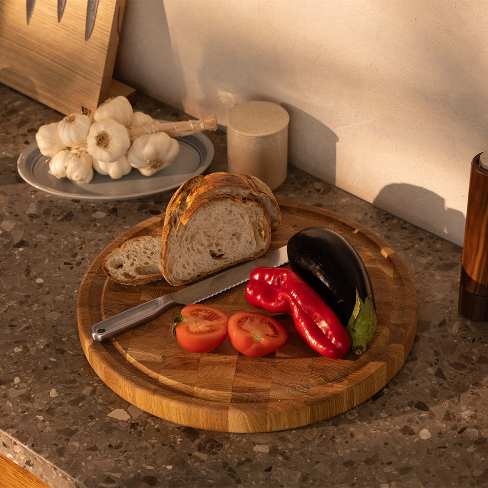 Woodsea Woodstone Kopshouten Snijplank – Massief Eiken – Rond Ø42 x 3,5 cm – Premium End Grain